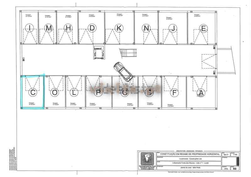 Na cave situa-se a garagem de 23m2 com portão automático de acesso.