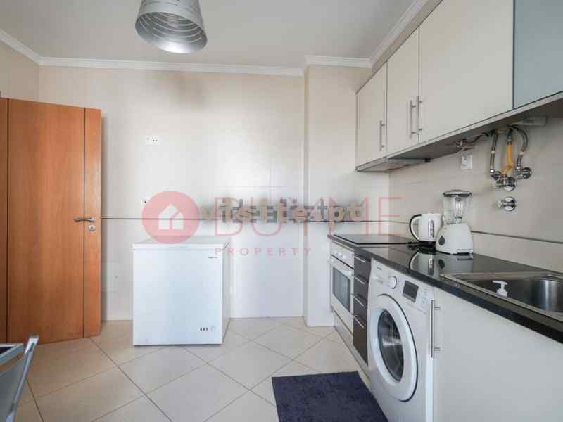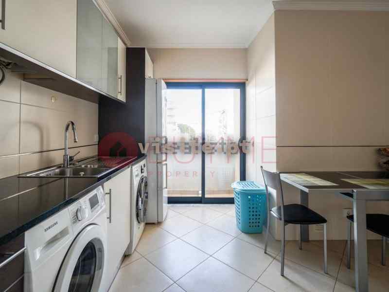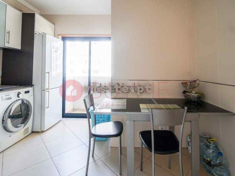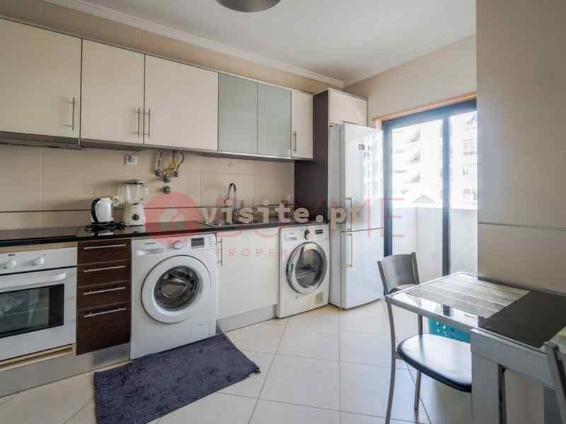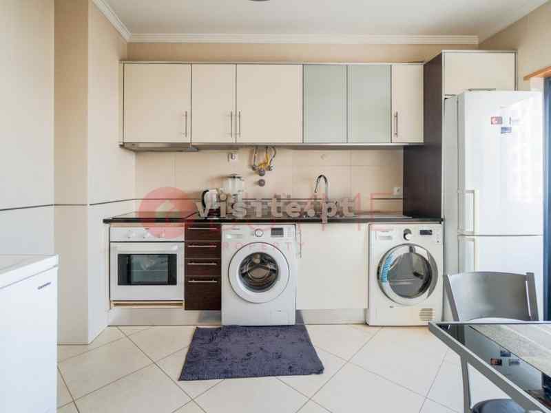 – cozinha separada totalmente equipada com forno, placa, exaustor, esquentador, frigorífico, máquina de lavar loiça e roupa, móveis lacados, bancada em granito