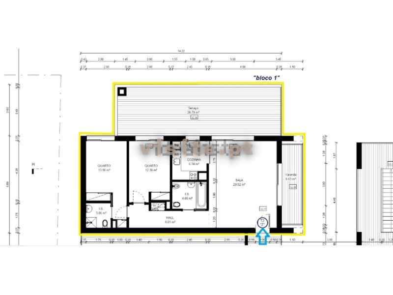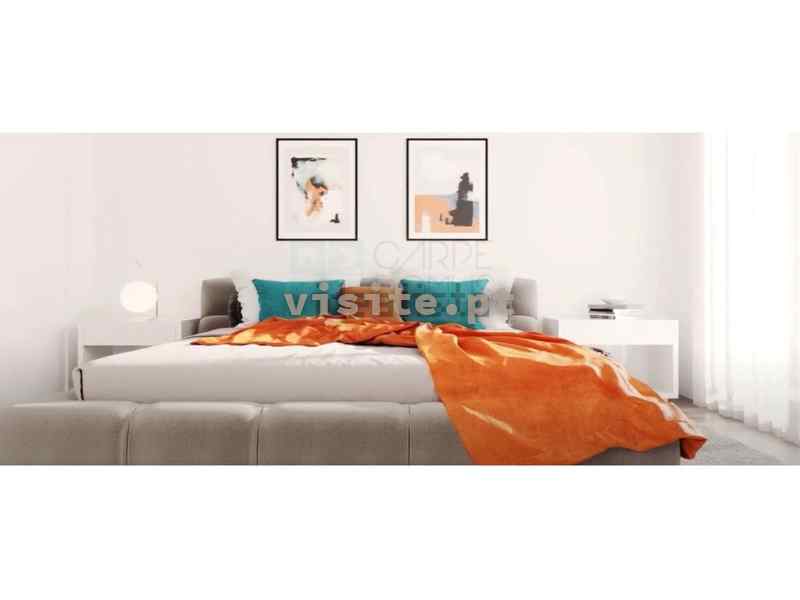 Apartamentos T2 constituídos por hall de entrada, sala, cozinha, casa de banho social e 2 quartos com roupeiros ( 1 deles suíte).