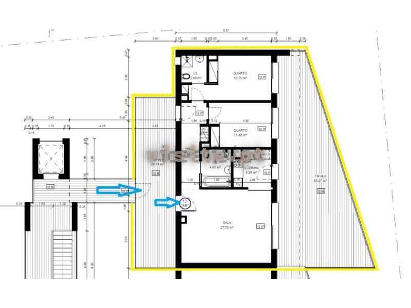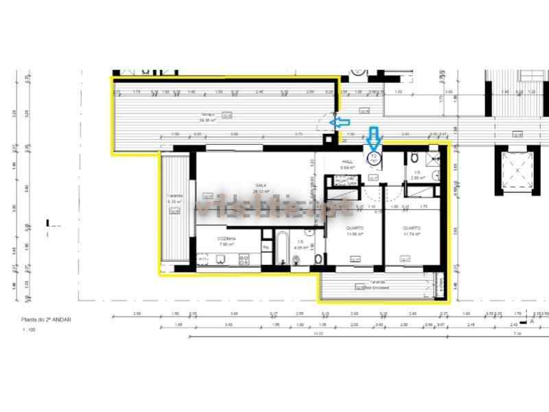 Apartamentos T2 no 2. º e ultimo andar, com preços de 520.000€ a 585.000€. ABC de 90,2m2 a 98m2. Terraços de 48,42m2 a 87,26m2. Áreas totais afetas ao apartamento de 193,96m2 a 233,80m2.