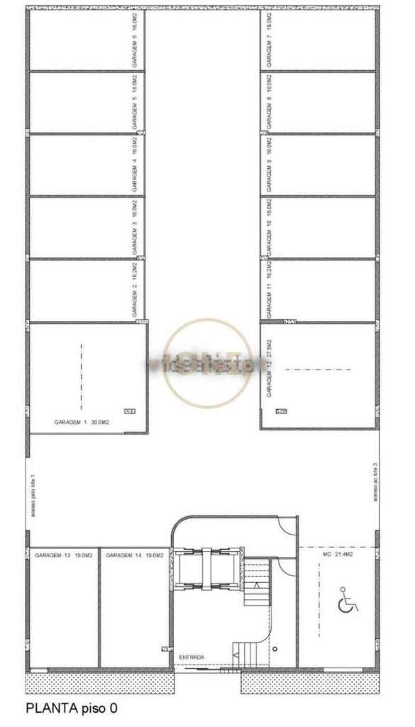 Paredes divisórias das Garagens, executadas em tijolo cerâmico furado 30x20x09cm.
