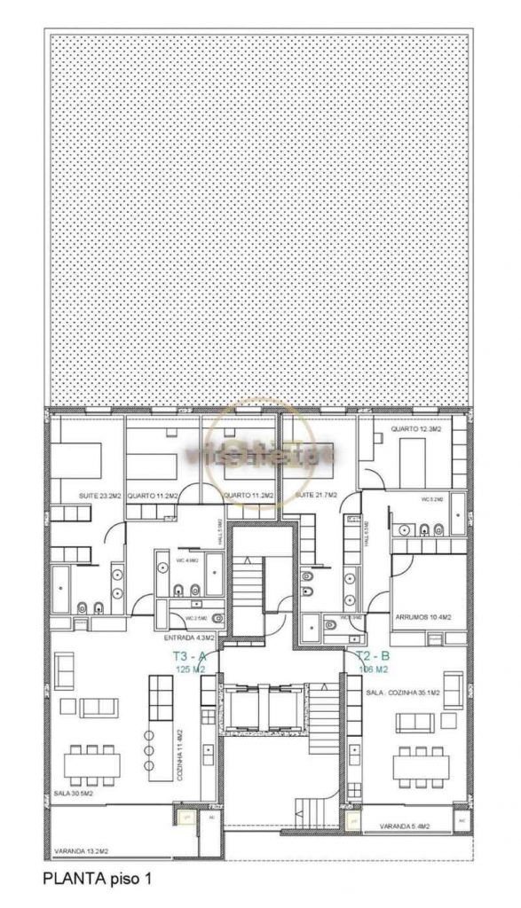 Revestimento de pavimentos de circulações, em tijoleira 60×60 cinza natural