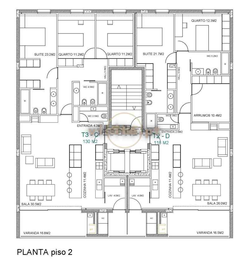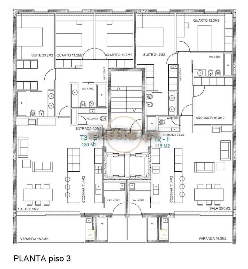 Pavimentos das Varandas impermeabilizados com uma camada de tela asfáltica,