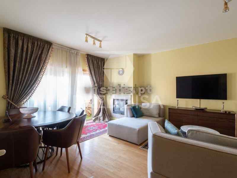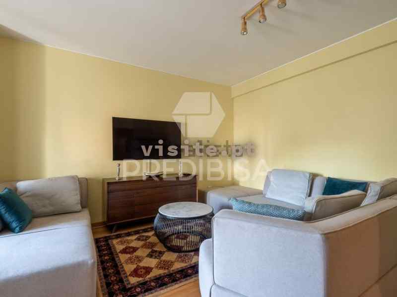 Apartamento virado a nascente, com aquecimento central, lareira, varanda, cozinha com lavandaria e despensa separadas (compartimentos autónomos), dois quartos + 1 quarto interior, 1 wc completo e 1 wc social.