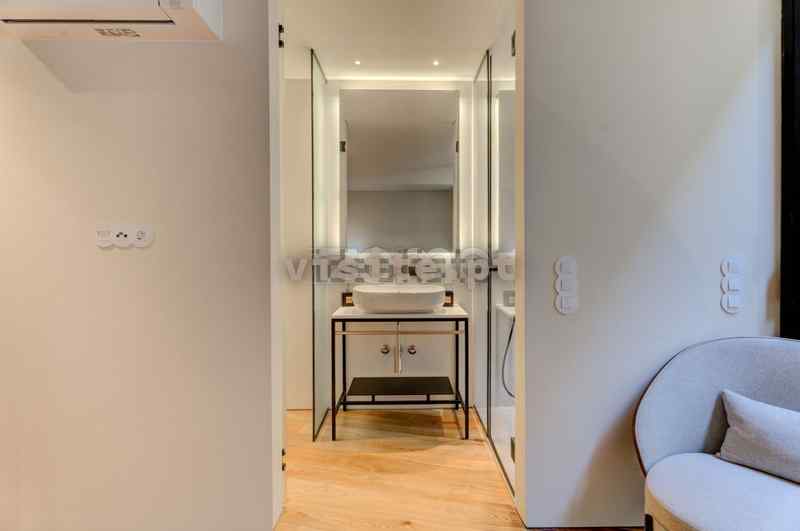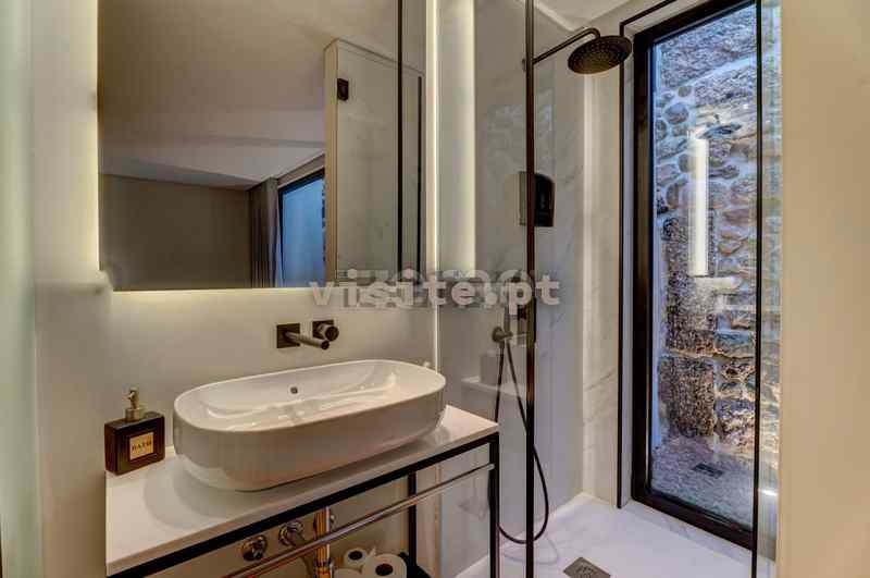 – Base de duche e lavatório com espaço privado com sanita.