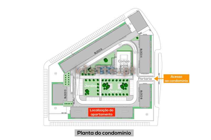 • Condomínio fechado com piscina, jardins, campo de jogos e portaria em fase de conclusã