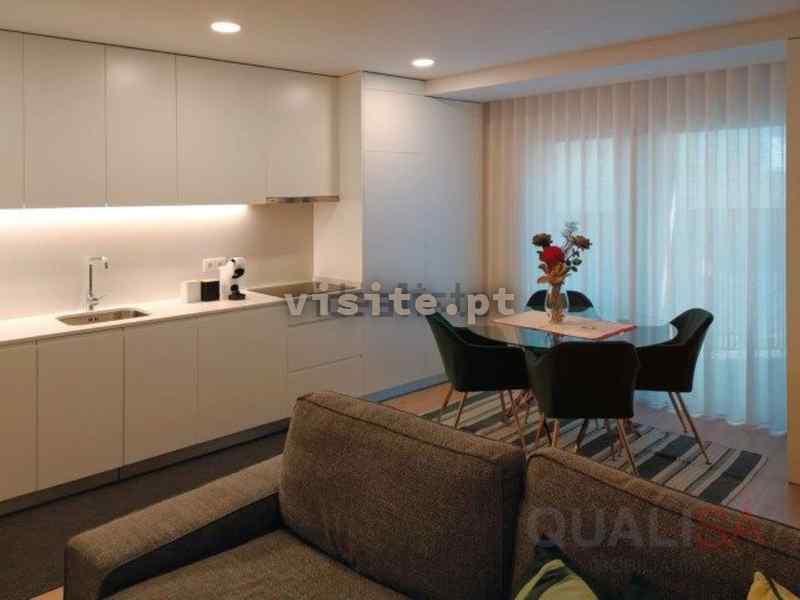 O apartamento está totalmente mobilado, com mobiliário moderno, funcional e elegante. Tem também todos os têxteis necessários, incluindo cortinados até ao teto.