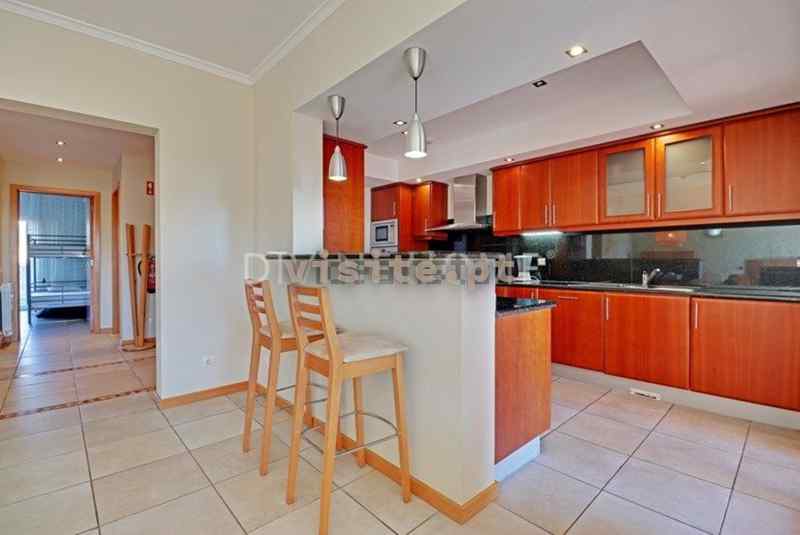 O apartamento é composto por um corredor de entrada com roupeiros embutidos. Do lado direito entra-se na sala de estar em plano aberto, área de jantar e cozinha totalmente equipada com máquina de lavar loiça, frigorífico/congelador, forno, microondas e bar de pequeno-almoço.