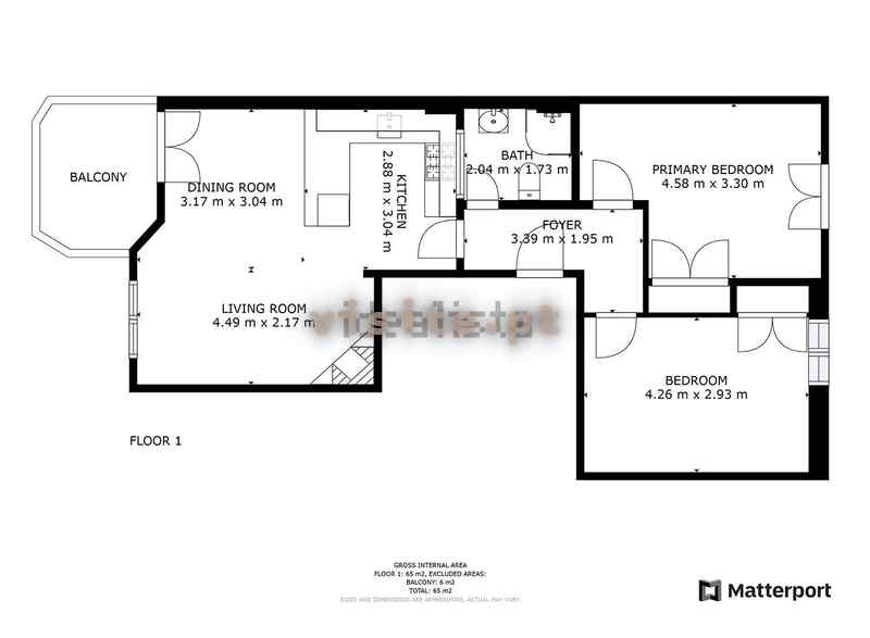 66 m² área bruta/ 57 m² úteis