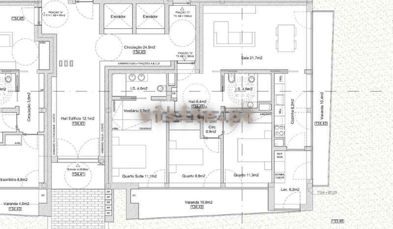 Os apartamentos de tipologia T3 compreendem um hall, sala de estar/jantar, cozinha, lavandaria, duas varandas, uma casa de banho completa, dois quartos com armário embutido e um quarto suite com vestiário e wc privativa.