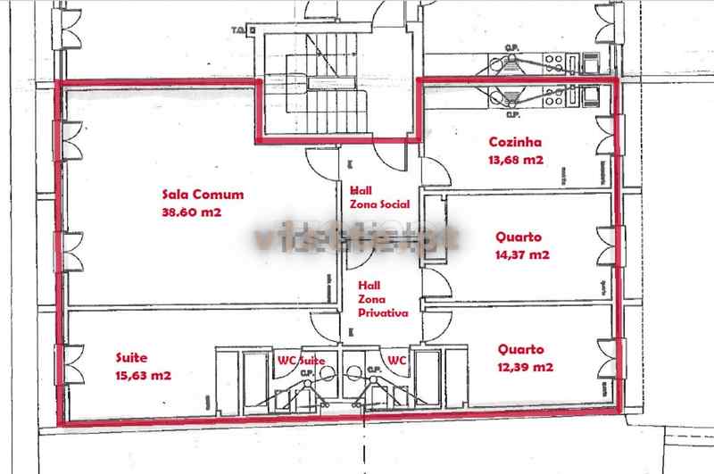 Na Zona Privativa,temos mais um hall que dá acesso à suite e aos dois quartos, todos com roupeiros embutidos, temos ainda mais uma casa de banho completa de apoio aos quartos.