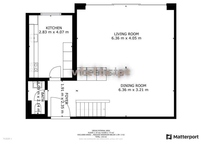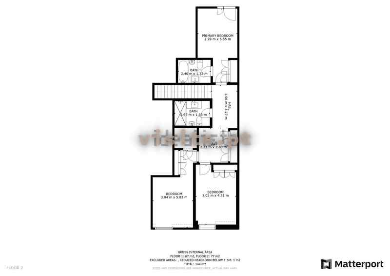 No piso de entrada é composto pela sala, cozinha e um banho de serviço. No 1º andar tem o hall de quartos com roupeiro, 2 quartos com varanda, servidos um WC completo, e uma suite.