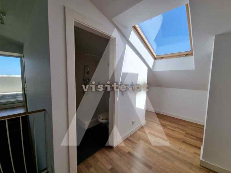 Apartamento duplex; cinco quartos (um deles no piso superior)