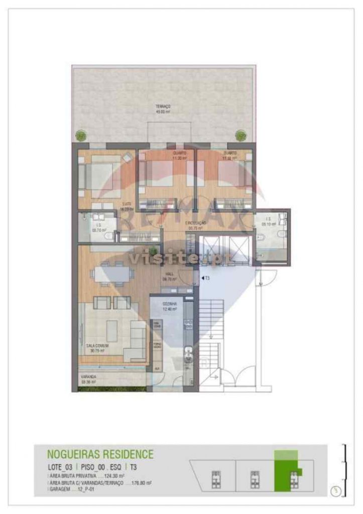 Tamanho : 124 m² área bruta