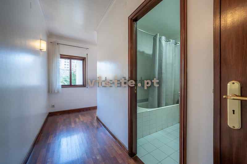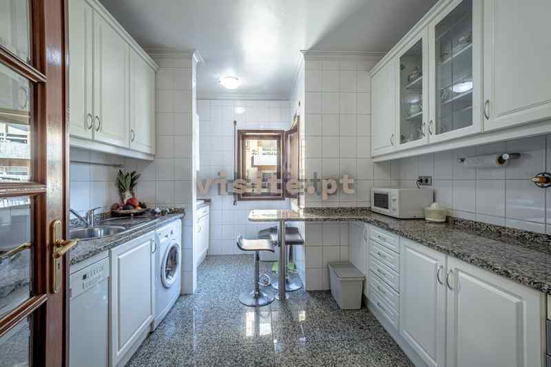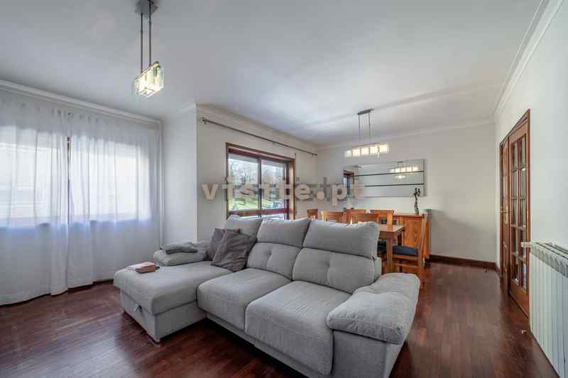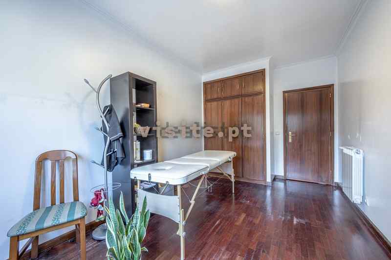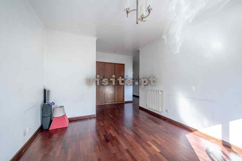 Tem uma sala bastante ampla, uma suite com 30m2, aquecimento central em todas as divisões, duas varandas e garagem individual para um carro.