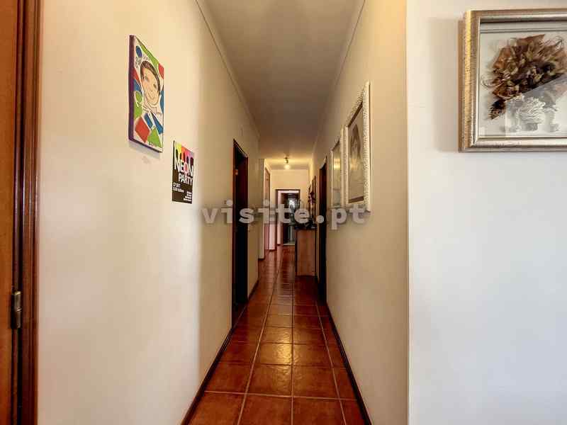 • Corredor interno com acesso à zona mais privada onde encontramos uma Suite com casa de Banho completa com chuveiro e dois quartos.