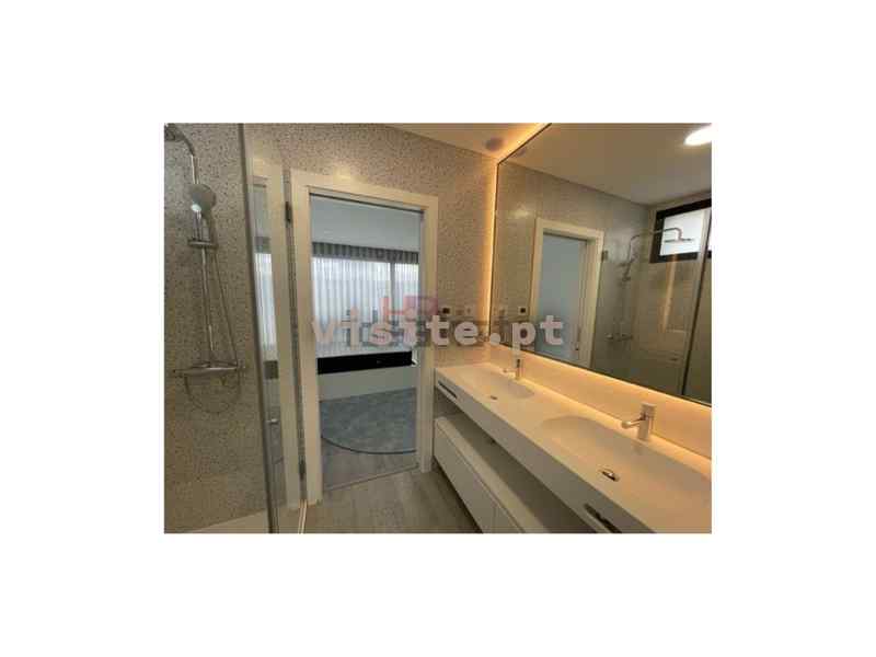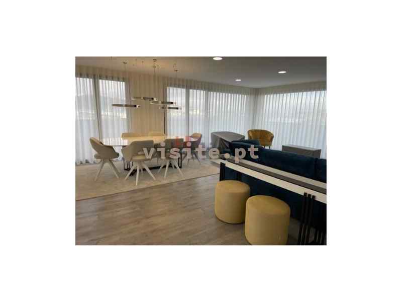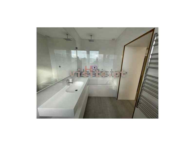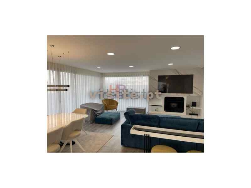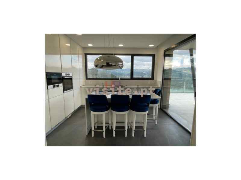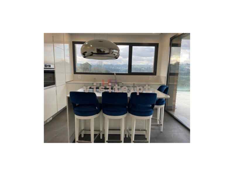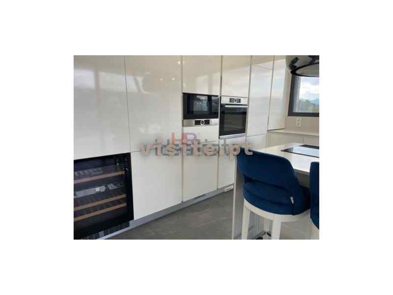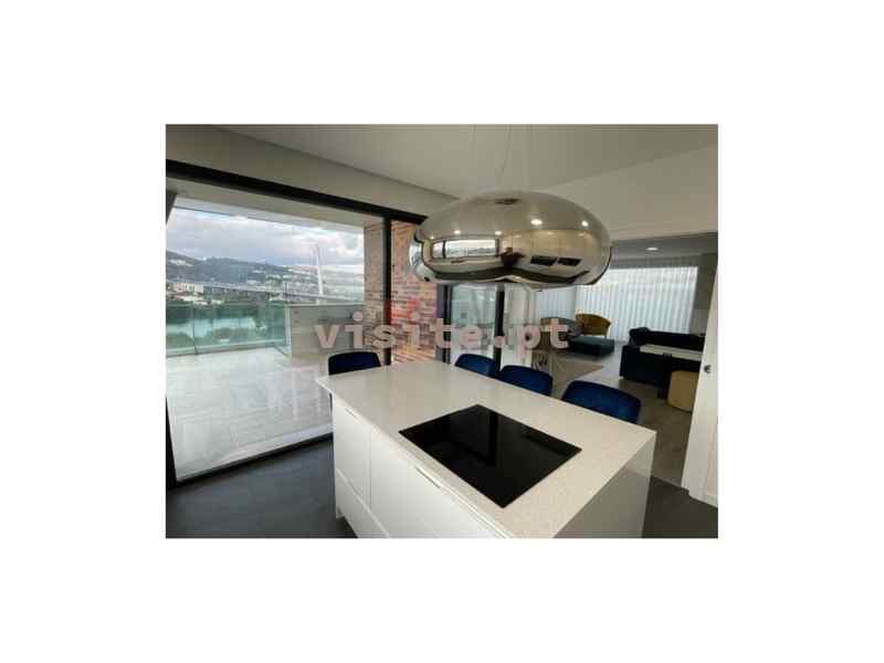Apartamento dispõe de sala com lareira com recuperador de calor a palletes, ar condicionado, acesso ao terraço e vistas de rio, cozinha totalmente equipada com eletrodomésticos bosch, modelo gama média alta, ilha com exaustor ao meio, garrafeira elétrica e também com acesso ao terraço e vistas de rio, suite espaçosa com porta em vidro e perfil em bronze e roupeiro, dois quartos com casa de banho comunicante ambos com roupeiro e quarto de criança com roupeiro.