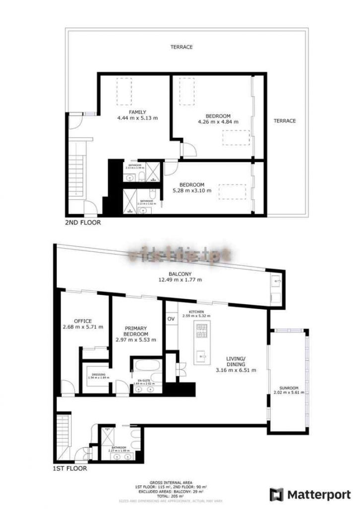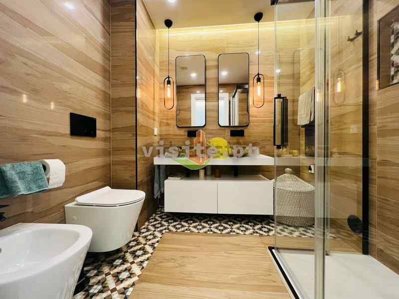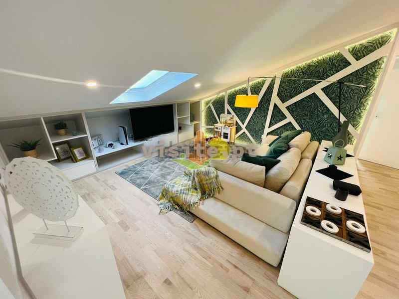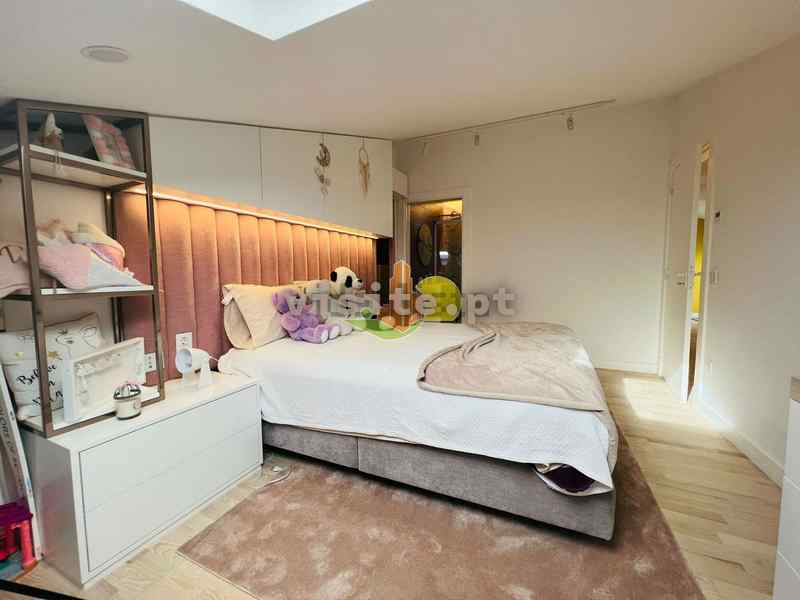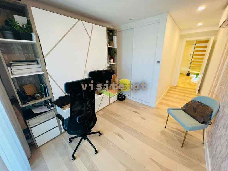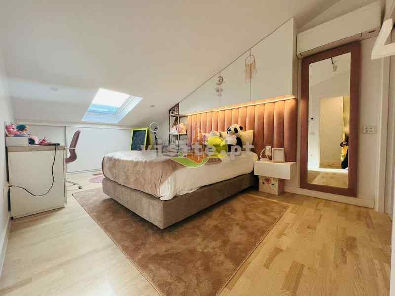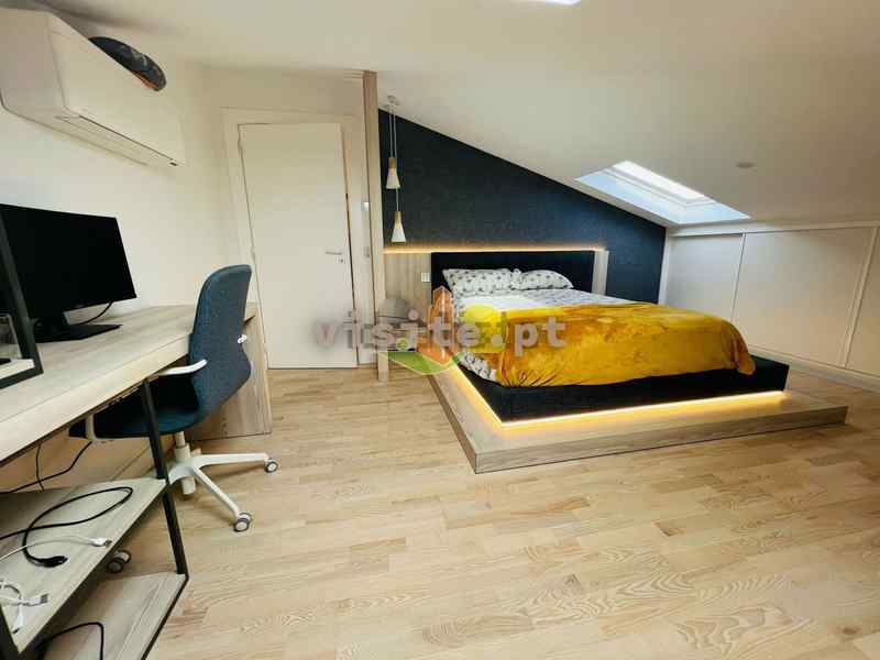 Num dos pisos temos um quarto com roupeiro, uma suite ( quarto com wc privativo e closet), wc completo, e uma sala que liga com a cozinha. Todas as divisões tem acesso a duas varandas fabulosas;