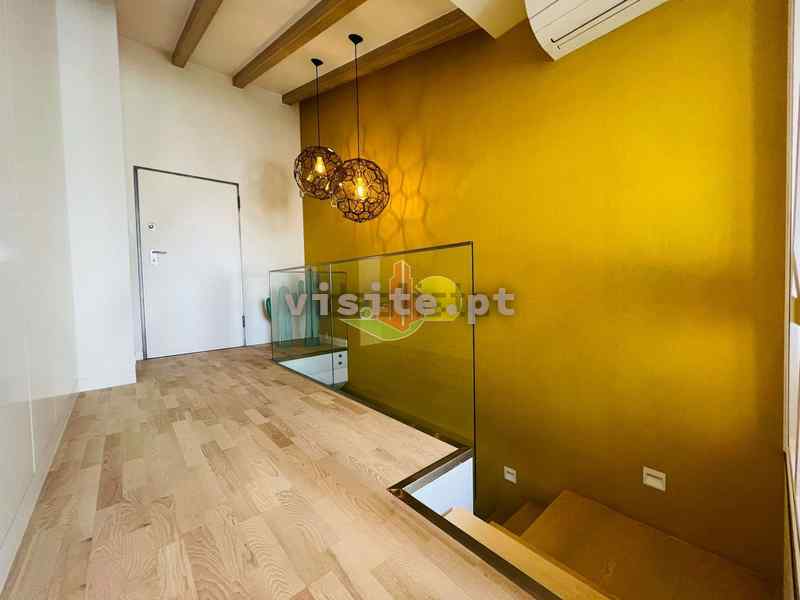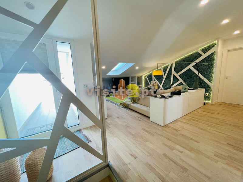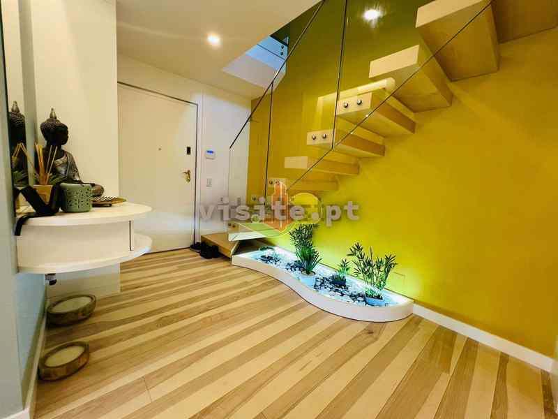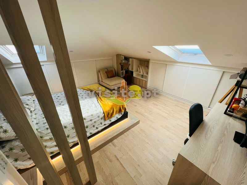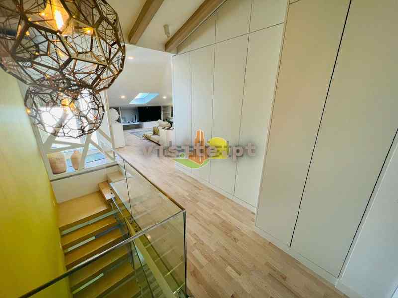 Subindo as escadas temos uma sala, um wc, um quarto com roupeiros embutidos uma suite ( com wc privativo). Tem ainda acesso a um terraço privativo maravilhoso com vistas de mar;