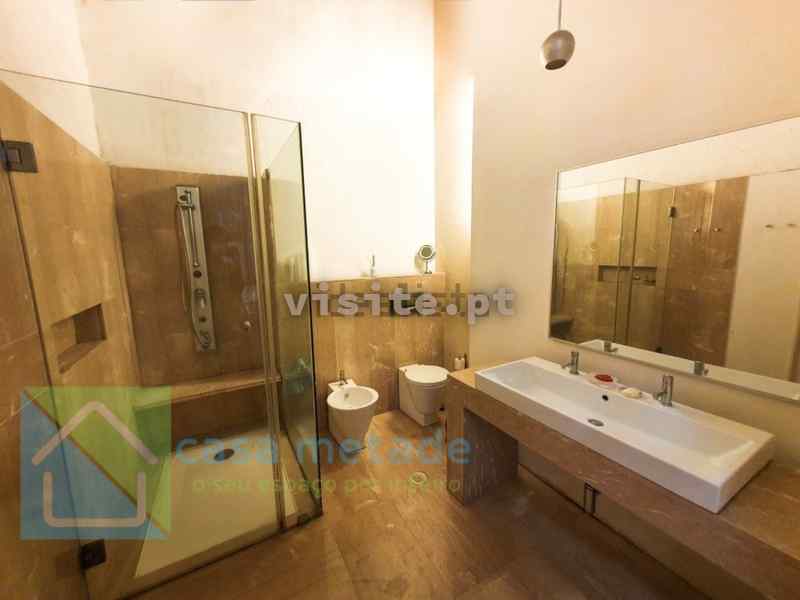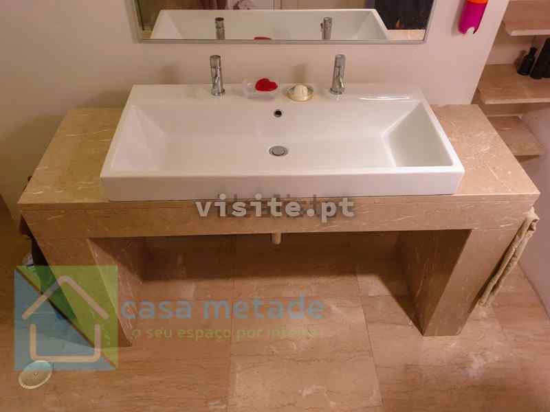 – Na casa de banho maior: chão, duche, lavatório e prateleiras totalmente em mármore português, Alpenina;