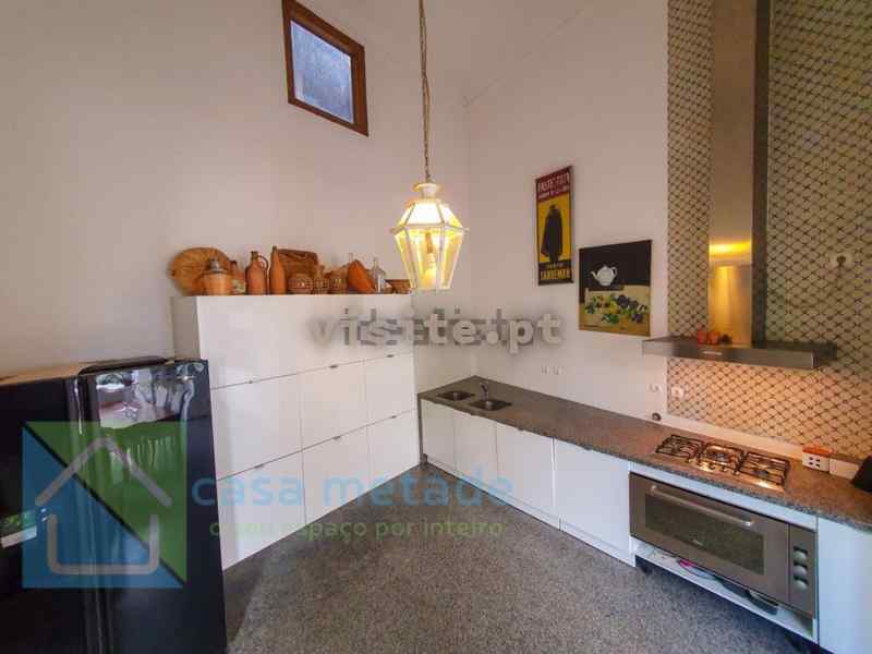 – Na cozinha: bancadas largas e chão em granito de Monchique, Sienito, pedra única no mundo. Azulejos originais;