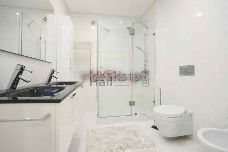 O imóvel está equipado com electrodomésticos da Marca Miele e, sanitários suspensos de Marca Roca e toalheiros eléctricos, com aquecimento central a gás natural e aspiração central, caixilharia Oscilo-Batente e vidros duplos, pré instalação de internet, tectos falsos com luzes embutidas. Muito boa Exposição Solar, Nascente Poente.